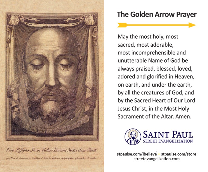 These are high quality holy cards on glossy card stock with the image of the Holy Face of Jesus on one side and the Golden Arrow prayer on the back.
