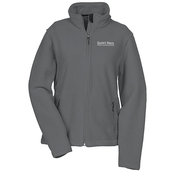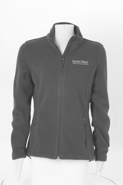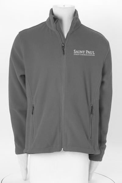 This jacket is made from a 8.3-oz, 100% recycled polyester fleece material. Store personal items inside a pair of front zippered pockets or inside a pair of interior pockets.